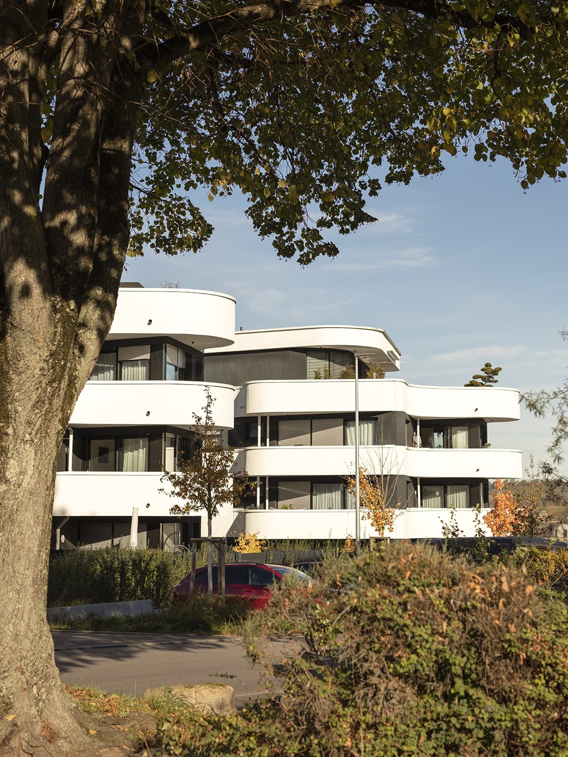 Markante Architektur mit weich geschwungenen Fassaden und fließenden Formen