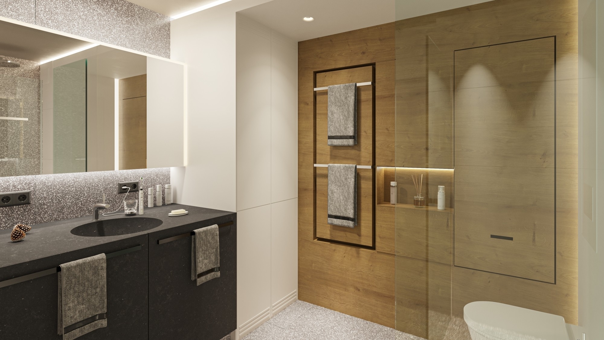 Hochwertiges Interieur z.B. Design-Wellnessoase, Bodenspots und exklusive Bodenbeläge