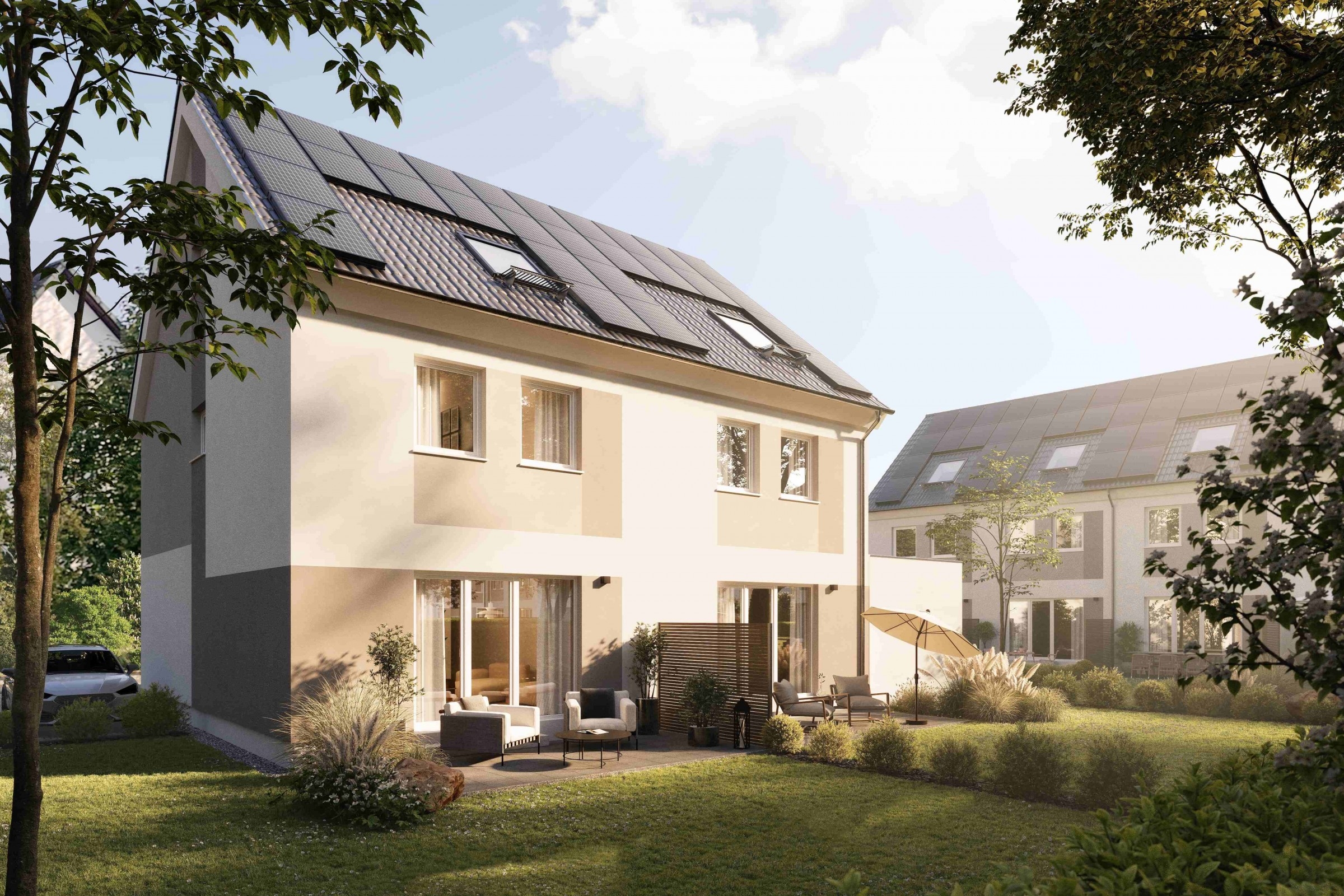 Nachhaltigkeit: KfW40-NH QNG zertifiziert, ökologische Holzbauweise, PV-Anlage, Luft-Wärmepumpe, Begrünte Gemeinschaftsfläche, E-Mobility-Vorrüstung